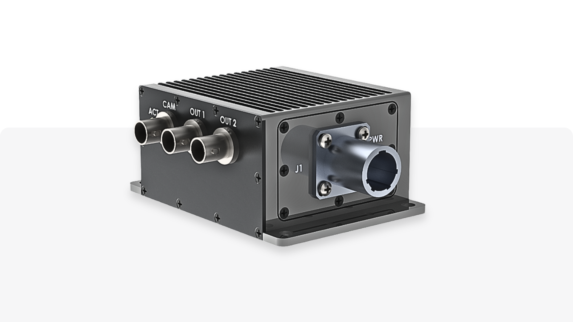 Rugged airborne video distribution module enabling long-distance transmission of high-speed SDI signals with power and control over a single coax cable, designed for reliable operation in harsh environments.